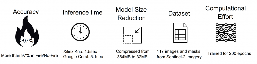 In the era of climate change and increasing wildfire events, the ability to detect fires early and accurately is more critical than ever. Fires pose significant threats to ecosystems, agriculture, infrastructure, and human life. As part of our Satellite-as-a-Service platform, we have extended our AI capabilities by developing a high-performance, on-board fire detection system, optimized for embedded hardware and designed to run directly on edge devices without requiring internet connectivity or cloud infrastructure.