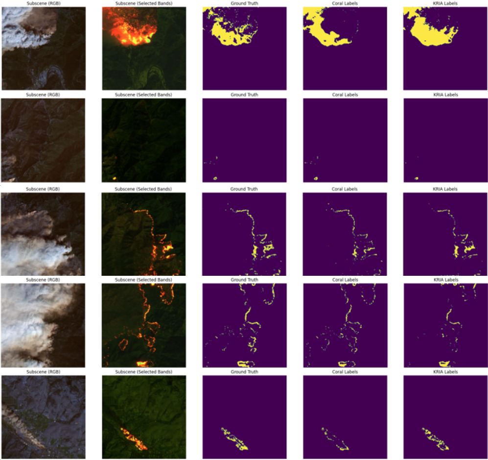 The model is optimized for lightweight inference on embedded platforms like Google Coral and Xilinx KRIA, enabling real-time processing without cloud dependency. Designed for drones, satellites, and monitoring stations, it ensures rapid decision-making even in remote areas. It generates interpretable fire segmentation masks with RGB and false-color visualizations, highlighting thermal anomalies. Performance is evaluated using IoU, Dice Score, Precision, and Recall, confirming its accuracy and flexibility across different deployment environments.